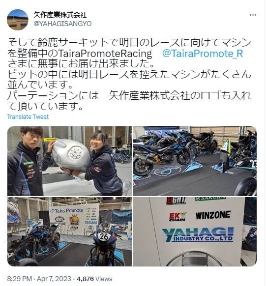 4月8日・9日の鈴鹿サーキットのロードレースでは、Taira Promote Racingさんのご厚意で、ピットやグリッドに入れていただき、舞い上がる私たち!