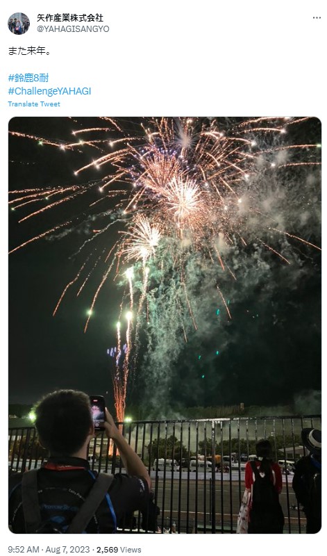 鈴鹿からの帰り道、我々のChallenge成功を祝ってくれるように、花火が!